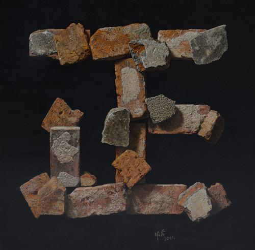 在艺术中的现实主义意味着什么?它意味着我们从现实生活中得到绘画的形象,得到我们的感受并去表达它。而写实主义的绘画形式又意味着什么?它意味着我们以一种忠实的态度去描绘现实的形象,它的空间、光和影、色彩和表面,去再现它在现实中的存在。是写实主义的绘画形式使得现实主义的态度成为艺术的真实,但是它对于不同的画家个体有不尽相同的意义,并且那种描绘形象的能力定义了不同画家的艺术生命。这样,在这个展览中,人们可以同时看到在相同的现实主义态度下呈现出的不同形式的写实绘画作品。冷军在他的场景写生中用简练、迅疾、准确和肯定的笔触生动地慨括出一种场景的氛围,这种场景或者是来自纽约的古董店、或者是来自画家的工作室或聚会的沙龙,它们散发着轻松的生活气息;而王用家在对砖块这个主题形象的描绘中,以一种极致精微的刻画把它从实用的功能中抽象出来而赋予新的意义,有时他会画一块孤立的砖,有时他会把砖块深思熟虑的去构成一个简化的汉字,最后他得到一个物质化的符号,人们会在瞪大眼睛去探视画布表面的同时,去冥思这个砖块文字的含义,然而不是所有的绘画形象都要表达一种意义,它也可能只是抒发一种情怀和意境,这种抒发通过在画面中对光影以及色调的处理而实现,这些可以在叶建华的绘画作品中得到体验,他把三十年前对女性肖像理想的描写转移到静物和风景的题材中,去表达自然本质的诗意,这样的情怀在陈运年的油画中则是一种回忆,他描绘旧炉灶的画面表达出一种对生活的怀念,这种怀念是属于我们每一个人的——我们每一个人在少年时帮助母亲分担家庭的义务,是那些生锈的炉灶和燃尽的煤在寒冷的冬天和饥饿的时刻维持我们的生命。与他们的描绘不同的是,武青生更关注形象在现实环境中通过光与色给视觉带来的兴奋,他把从生活中截取的形象分离成为具有较高纯度色彩的各种形状单元,使它们像万花筒中的碎片一样再回到它初始的形象,他的绘画以新的方式表达了阳光和色彩,是印象派的绘画在今天的回声;同样是在表现现实生活的形象中,管适试图以“绘画的语言”去表现绘画,即在他的作品中有一种以既定的绘画形式去描绘形象的实验,而不是真实地去再现形象,譬如他明显地把中国画的形式同西方油画对形象的描绘结合起来,或者同当代艺术的形象概念结合起来;王万萍是我们之间唯一的女性,她的静物和风景表现出她可以同时在古典和现代风格的方法上去创作绘画;对于我自己,我可以说的是,像逃避了一种生活一样,我也逃避了对现实形象的描绘,但是仍然想要通过对抽象形象的创造去表达它们可能的与现实的联系。