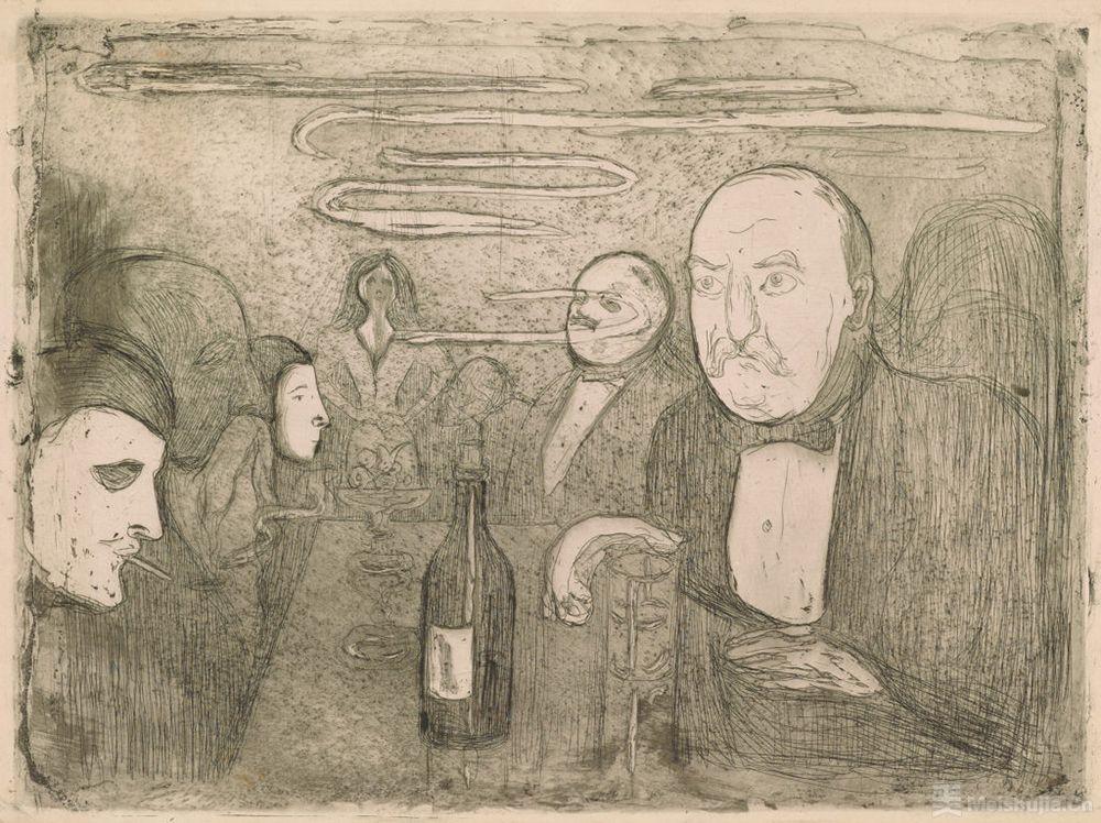 蒙克的家乡奥斯陆是一个受路德教会严格控制的社会,为了打破传统生活方式的束缚,他广泛游历欧洲,在巴黎和柏林结识了一群崇尚波西米亚主义的作家、诗人、艺术家。他们批判社会传统、追求自由恋爱,促使蒙克的创作逐渐打破艺术、文学和哲学的边界。
