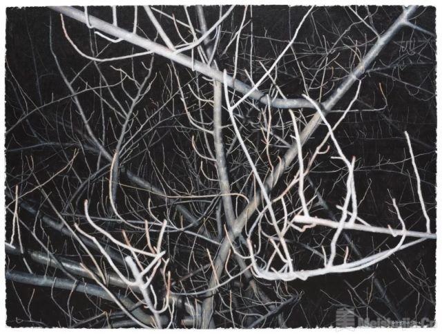 祁磊的近作描绘在户外风景中处于自然劳作状态的人。日常的景象在紫红树林背景的渲染下显现出非现实的色彩。他以这种隐晦的绘画性语言来表现在现实洪流中蹒跚而行的存在,也诉说自己和人们内心的焦虑。