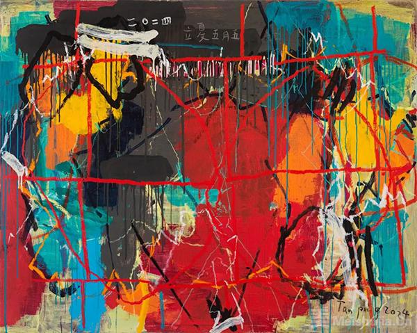之后,一层层的“片段化”感受,被持续地保留。扭动的生命,戏剧化的历史成为作品的背景音。画面中满是沸点,“即兴”点燃着“即兴”,“破碎”燃烧着“破碎”,它们不断地被击打、耗损,然后闪耀、隐匿,走向“失控”。但谭平并不担心因此失去坐标,他反而需要在画面中建立与如今的世界同样的密度,同等破碎的版图和精神的意象。也只有这样,这些画中的形式,主次、轻重、大小、多少,才能通过语言与精神的方式,被置于与当下同步的位置,来探索人类的状况。