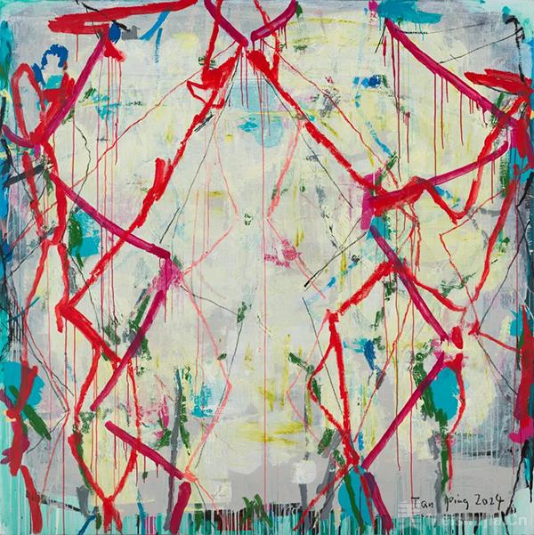 画中的力量,同样来自于劳动与时间中的情感,那种反复描绘的坚韧。和传统“抽象艺术”的减法不同,谭平总是不断做加法,以注入不同时间的目光、沉思与灵韵,倾注截然不同的姿态与情感,立场与精神,有限与无限。
