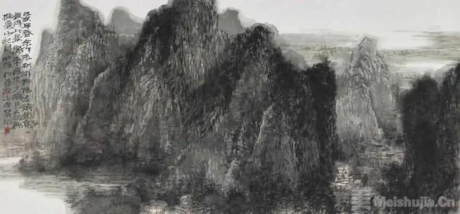纵观白晓军先生的山水画创作轨迹,始终贯穿着对传统笔墨的继承与创新。“外师造化、中得心源”是他山水画最动人之处。他突破了传统山水“以景造境”的范式,转而以“文化山水”为精神内核,构筑起桂林山水独有的意境之美。他画的是桂林的山水、桂林的文化,更是艺术家本身的文化修养和沉淀。