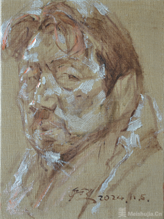 坚定而怅然的目光,这是刘亚明青年时期的两张《自画像》(1995)为我们留下的生命印象,浸透着华夏士人自屈原以来的忧患意识。伴随岁月的熬炼,他发现一个艺术家真正的价值,不仅在于他表达了什么,更在于他在艺术语言方面如何表现。这构成他创作三张巨作的内在文化动力。同时,画面中的每个人物形象,其实不过是他作为个体之人的生命情感长阔高深的外化显现,不过是他在人我关系中进入自己的灵魂深渊的向上涌泉。他的《2021自画像》系列(2021)与《自画像》系列(2024),更是他咽下被无尽囚禁的时代苦水后发出的浩然悲悯的视觉见证。其中,交织着不屑与愤怒、震惊与孤傲、仇视与厌恶、哭泣与哀挽、逼视与隐逸、无助与伤心、怀疑与批判、仁慈与共情、淡定与期盼、沉着与执念等的目光。