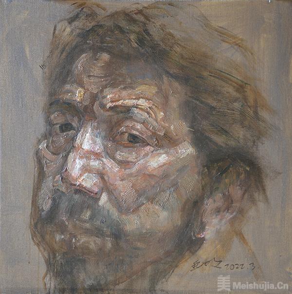 这是我们从当代艺术家刘亚明的《2021自画像8》(2021)中的所看所见。那本是一个充满生机、盼望的季节,但他的这个系列“自画像”却由始至终传递出一种绝望不屈的生命情感。其目光,似乎直接穿越了创世之初的“渊面黑暗”、把人引向对于永恒之光的祈盼。