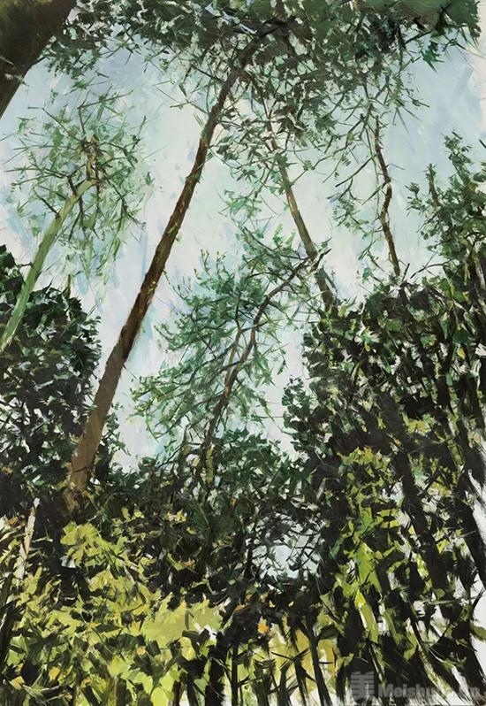 近年来,许江集中着眼于油画的山水创作。他笔下的山,并非飘渺之“彼山”,而是扎根于江南土壤、呼吸于时代风雨的“此山”。在江南群山的语言中,捕捉天地应和、追怀逝水流风、兴发时代激情,最终铸炼成一种充满东方情怀的山水之诗。
