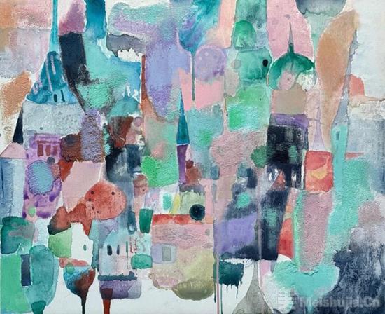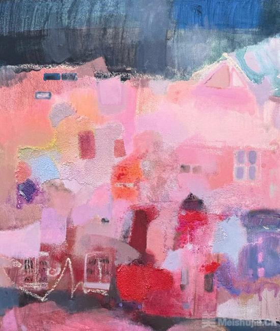 《叠城》所展出的作品几乎都是倪蓓蓓这两年在上海工作室完成的。相较以往,这批作品的下笔和色彩的干练显得更为果敢,也更为松弛。我们很容易猜测造成这种结果的原因:她在上海,不需要在作品中“讲点什么想法”、只需要在作品里“描述些自己的感受”;她也不需要冲着某些目标而面对作品,只需要延续自己的状态面对画面即可……因此她就放松、无谓,也就果断了——果断也意味着不讲究对错,只讲究做不做。