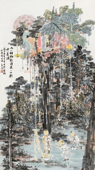 十年前,我想挑选一名本科生选送北京故宫学习书画装裱和鉴赏,唯一的条件就是“优秀”,慎重考虑后挑选了刘启谋。经过一年多学习的他果然不负众望,回来后把学院的藏画精心修复完毕并在我院的中国画学院开设了书画装裱和鉴赏课,填补了一项学科空白。在此,顺便感谢刘启谋为我的创作所作的帮助,因为我创作的作品之多、篇幅之大确实花费了刘启谋大量的精力和体力。