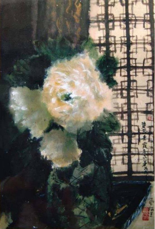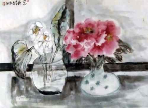 一股淡淡的清香,随风飘来,真有暗香盈袖。厅堂放着一盘兰花,就会有这个感觉。花之君子者,兰也。王者香,兰也。人们都这样称颂兰,的确,兰既幽香又高雅,或兰惠数株,一茎花数朵,配着修长的绿叶,潇洒飘逸,对着她,你会有心平气和有如欲仙,艺术家怼她情有独钟,作为入画的好题材。我家也有这位“兰君子”她在宣纸上与我“谈心”那褐色的茎,缀着淡黄色朵朵小花,如展翅欲飞,以水墨写其形神,是很有韵致的一位“高朋”有时我也想起另一位朋友“西洋兰”她们虽然都叫“兰”可风格却不同,西洋兰色彩丰富,或淡雅或浓烈,很有自然美,作为题材入画;她是一位美丽的姑娘,她们都可以是我笔下的“谈心”者,而两者,我喜欢谁呢?说不清。我爱有梦幻美的东方神韵,也爱丰富多彩的西方美,我爱线条酒脱,也爱块面的写实。如是朋友相互交流,取长补短,而仍保存各自的人性。艺术上的品种流派,亦是可以互相交融,吸取,而又必须是各自独立的存在,这是世界艺术之花之所以灿烂繁荣。