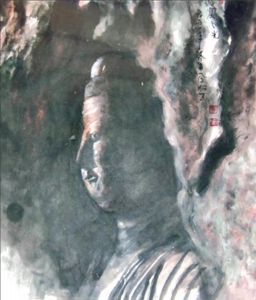 洞窟之光:在暗暗的峭壁上,有特殊的光感,象油画实是中国彩墨画中国画的深厚文化内涵,不会囿于一定写法。