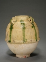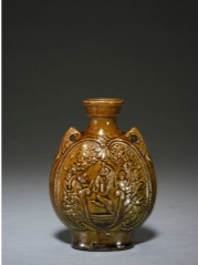 图2 北朝 绿釉凸花人物纹双耳扁壶