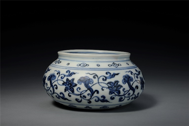 图4 明永乐 青花缠枝花纹鱼篓尊