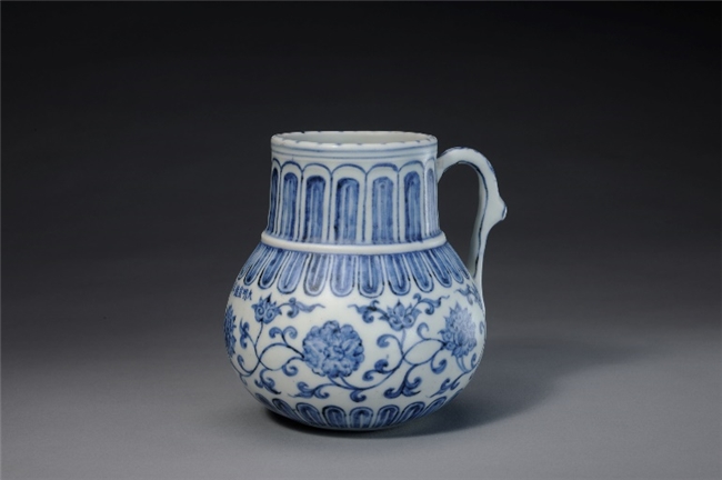 在经济压力下南宋王朝鼓励对外贸易,瓷器和丝绸成为大宗输出商品,值得注意的是因为对海外市场的关注,导致南宋时期的瓷器生产呈现着以下特点:第一是在福建、广东、广西地区出现了模仿内地名窑场产品的窑场,其生产目的多以海外为市场;第二是在生产之初无论是器物类别还造型和纹样,开始有意识地思考海外市场的需求;第三是当时的知识界和政府层面已开始关注和收集海外各地区对中国瓷器和丝绸等商品的需求差异和关注程度。元朝建立后不仅沿袭宋代旧法鼓励外贸,甚至采用官本船即实行官府出资招募私人下海贸易的股份制外贸模式,再加上蒙古人在欧亚地区建立了规模空前的帝国,东西方的交流和文化互动也同样空前便利,中国瓷器迎来了向外输出的最高峰时期,这一波瓷器大规模的输出一直持续到郑和下西洋活动被停止。该时期表现在中国瓷器的外来文化因素和青花相关,一方面是来自西亚的客匠把产自波斯地区的青花钴料和景德镇的青白器对接生产出了青花瓷器,另一方面南亚、西亚地区流行的纹样和器类、器型成为明代早期瓷器的时尚并大量销往东南亚、南亚、西亚和非洲地区。可以肯定说青花瓷的出现是中国与西亚技术、文化结合的完美表现(图4;图5)。明代档案记载的回回花纹从永乐宣德时期一直流行到万历时期,也反证唐代瓷器上的同类纹样同样是为了服务于西亚市场,是中国瓷器在生产始端已考虑海外市场、自觉融入全球经济链条的表现。