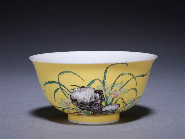 图7 清雍正 珐琅彩黄地兰石纹碗