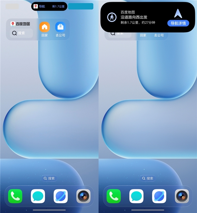 在步行、骑行等多任务并行场景中,用户需要持续关注导航信息却又可能频繁切换手机应用的场景,荣耀MagicOS的灵动胶囊功能提供了优雅的解决方案。百度地图将步骑行的核心导航信息,如行进方向与剩余距离,实时显示于屏幕顶部的灵动胶囊中。即使用户将应用置于后台或浏览其他内容,关键信息依然抬眼可见。这解决了用户以往必须在应用间反复切换或忍受导航中断的困扰,实现了多任务并行下的信息连续体验。