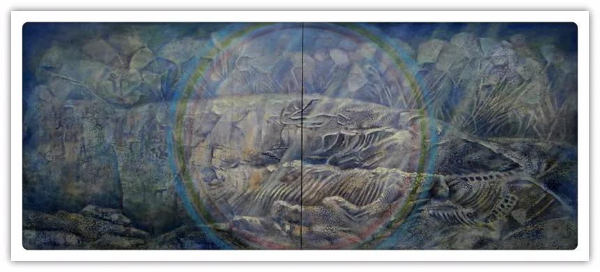 《红崖天书一一难解之迷》油画,规格:320cmX100cm