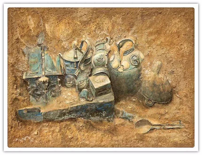 《青铜.人类文明之年轮》油画,规格:120cmX150cm