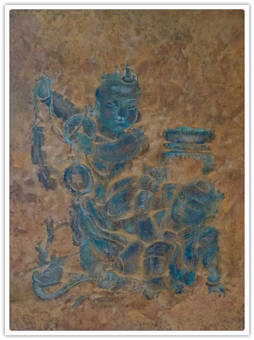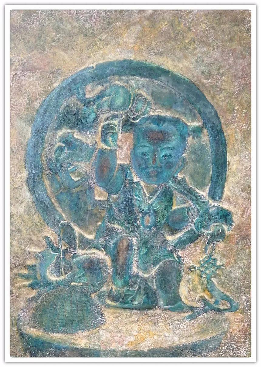 《青铜.人类文明一一喜戏童子》岩彩画,规格:50cmX70cm