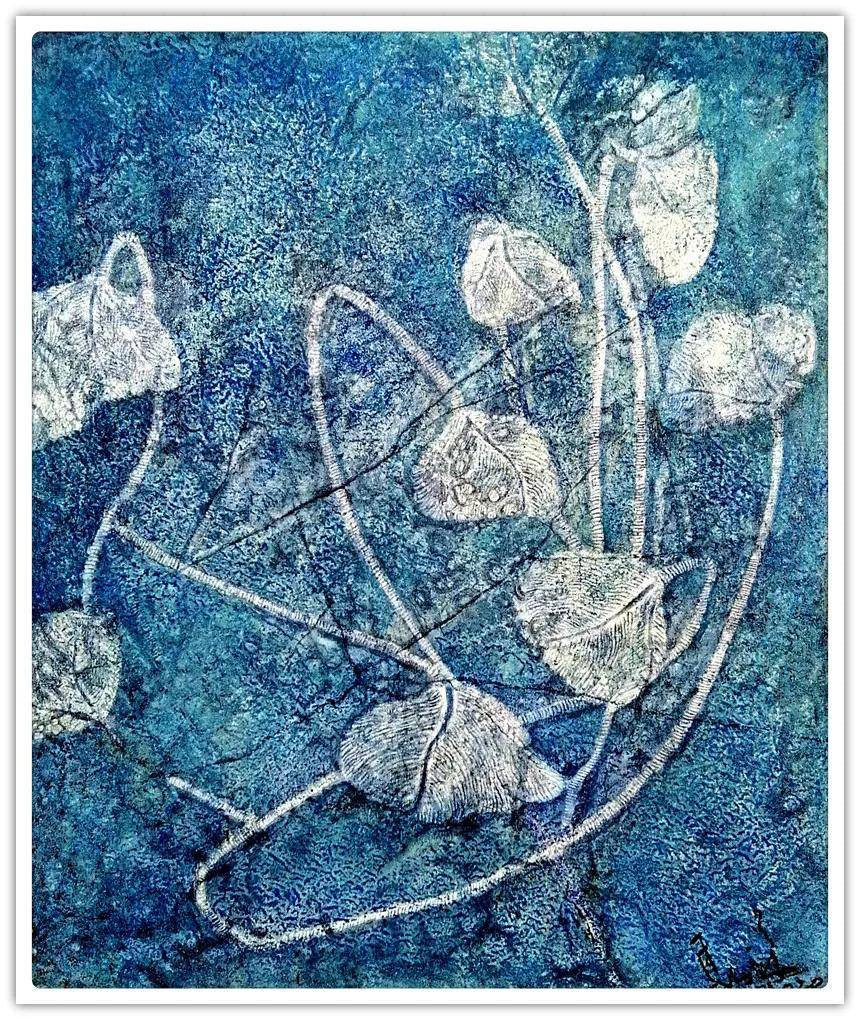 《海.百合一一 蓝缘》岩彩画,规格:50cmX60cm