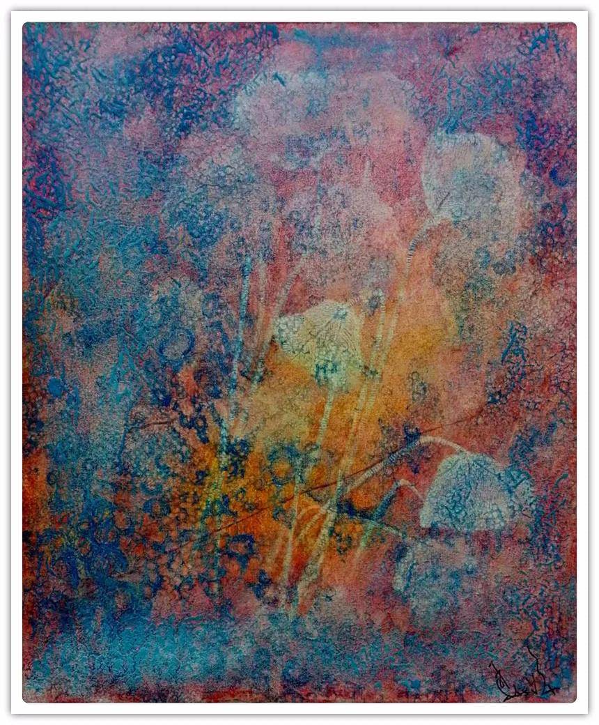 因为在用文化心觉和印染形态进行油画创作,所以独特的画质只马先生可以完成。要知道,马先生除了是一位专业的油画家、岩彩画家,还精通印染独家秘诀,画里独特的印染风貌,唯有他能画,别人不可以!独特的才华,让他的画必有收藏的独特性!