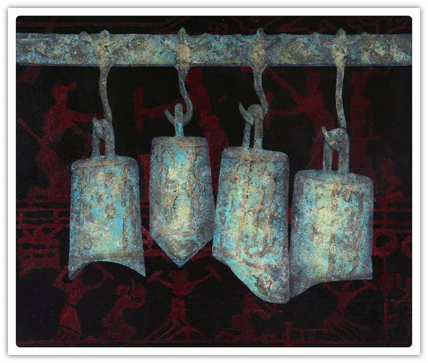《青铜.人类文明一一天籁之音》岩彩画,规格:150cmX120cm