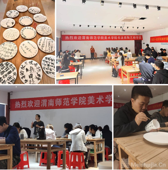 领略中国几千年的陶瓷历史长河,从古朴的原始陶器到精致的青花瓷,每一件展品都诉说着陶瓷文化的博大精深。革命板块的参观更是让师生深刻感受到了陶瓷艺术与中国革命历史的紧密联系,那些以陶瓷为载体的革命主题作品,不仅展示了陶瓷工艺的精湛,更传递了革命精神的不朽。于是,众多师生也尝试着自己在瓷胚上写词作画,为这次的考察又填上了浓墨重彩的“一笔”。
