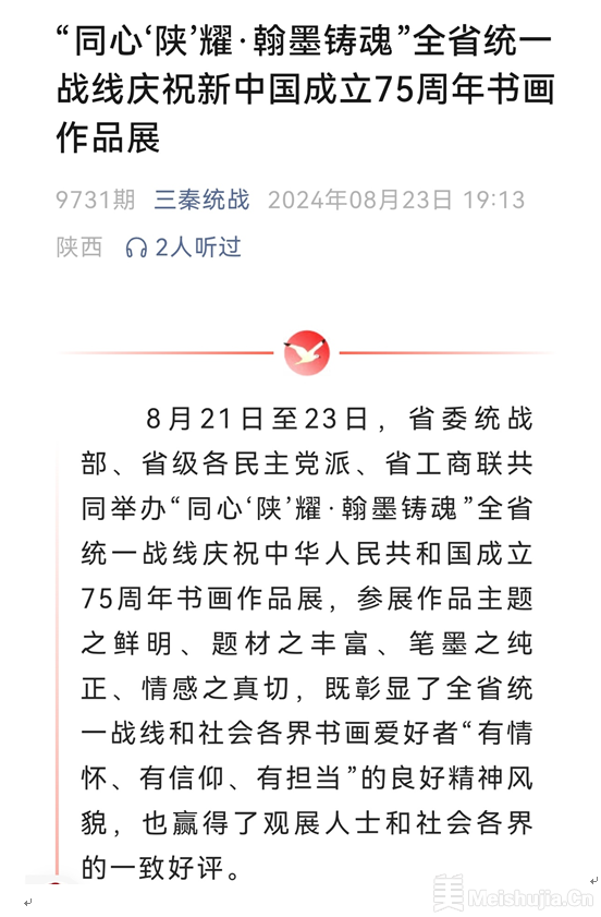 近日,陕西省统一战线庆祝中华人民共和国成立75周年书画展圆满落幕,渭南师范学院美术学院传来喜讯,该校4名优秀学子脱颖而出,荣获佳绩。