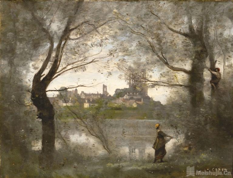 展览中,柯罗的作品尤为引人注目。柯罗观察自然的方法及营造的诗意氛围,启发了梵高、莫奈、雷诺阿等印象派画家。柯罗也被20世纪初的艺术史学家视作“印象派先驱”。流连于展厅,观众可近距离欣赏《阵风》《芒特(清晨)》《芒特(夜色)》等柯罗代表作,感受其标志性的灰绿色调与诗性笔触,理解这位“巴比松导师”如何启迪印象派的光影革新。