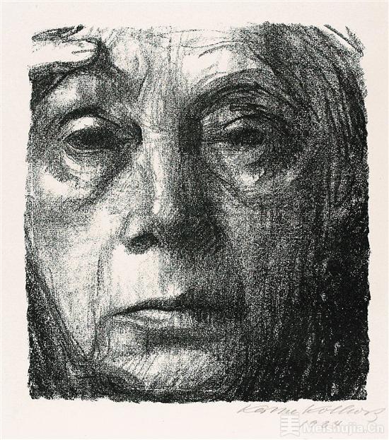 (2/3)凯绥·珂勒惠支 自画像 37.4×26.9cm 图像尺寸20.5×18.5cm 石版画印于织纹纸上 1934年 加拿大国家美术馆藏