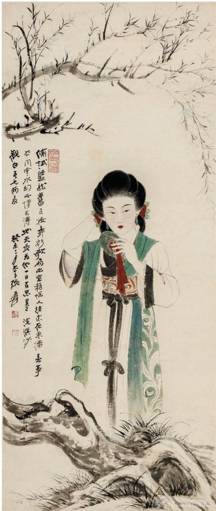 张大千 对镜理妆图 114×49cm 人物画