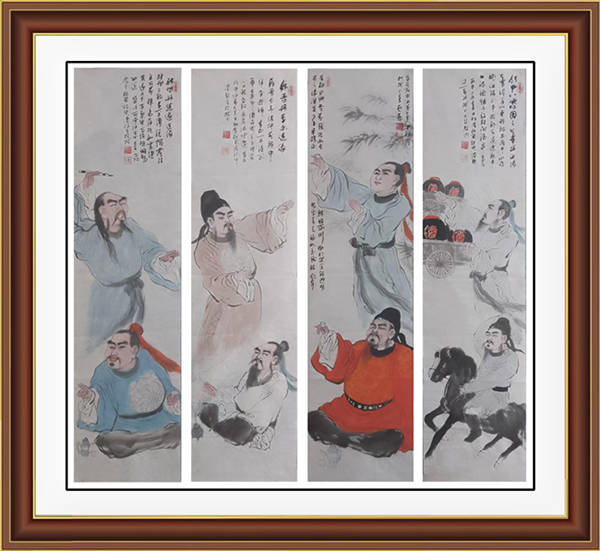 (II) Embracing Nature and Integrating Poetry, Calligraphy, Painting, and Seal Art. Chang Shifu believes art originates from nature. He excels at observing life’s details, seamlessly blending natural elements into his works. The figures in his paintings seem to grow organically from nature, coexisting harmoniously with their surroundings. Moreover, he strives to achieve the artistic essence of integrating poetry, calligraphy, painting, and seal art. In his works, calligraphic lines and painting techniques complement each other, while the decorative seals serve as the finishing touch that completes the composition, imbuing the entire piece with cultural depth. The poetic ambiance is skillfully woven into his art, allowing viewers to experience a poetic atmosphere when appreciating his paintings, as if stepping into a world brimming with artistic charm.