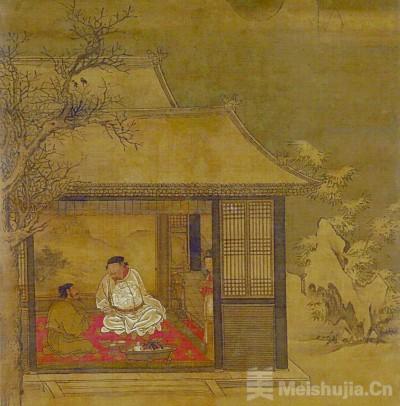 晚明之际,吴彬绘成《岁华纪胜图》十二页,逐次状写了各个月份里的典型民俗行为。这套图册藏于台北故宫博物院,流露出明显的江南景致特点。十一月的画面《赏雪》表现了雪日园林景观,在画幅的上部,园主、女眷、宾客等齐聚于临池的厅堂,每个房间都陈放着宽大的炭盆。盆里摆有壶罐,侍女们采集花木上的积雪,装入盘中,就炉煎煮。用雪水煮茶的做法得古人青睐,世代传承。