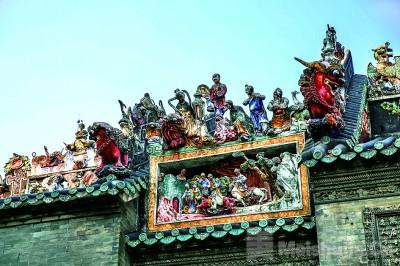 在广州陈家祠的屋脊上,一群陶塑人物栩栩如生。文武将相、仙娥神女,历经风雨,釉彩依旧明艳。这总长156米的陶塑群像,刻画了上千个故事人物,犹如一部用陶土写就的岭南史诗,默默诉说着国家级非物质文化遗产——石湾陶塑的辉煌历史。