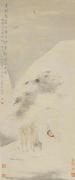 清代画家华喦的《寒驼残雪图》轴以精妙的对角线构图,在尺幅间营造出天寒地冻的边塞雪夜。