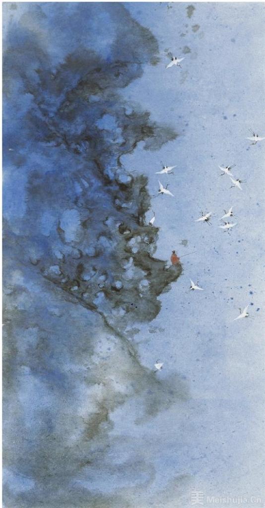 袁柳军 钓鹤 74×145cm 纸本彩墨