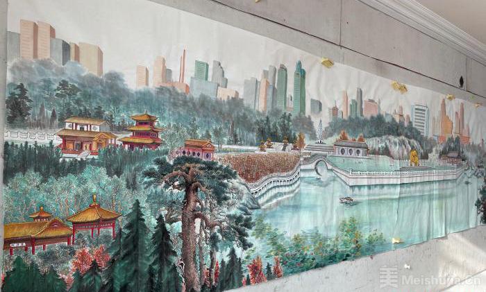 在长卷中,刘世奎负责反映新城新貌的“中央公园”部分。“有幸参与这次创作,通过画笔来展现家乡人文景观、经济建设等方面取得的成就,感到特别骄傲自豪。”刘世奎说。