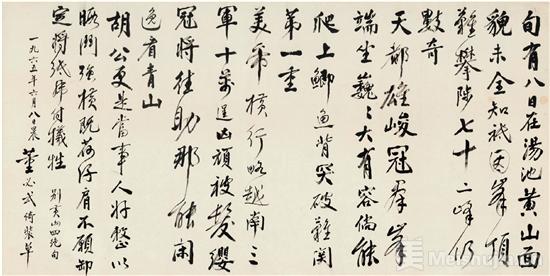 董必武同志终生酷爱书法,以“我虽不善书,好书莫如我”自许,直至近九十高龄仍坚持习字。他的书法功底深厚,楷书凝重端庄、遒劲朴雅,行书清新飘逸、雄浑流畅,具有浓厚的书卷气息。他的诗作和手书相得益彰,是诗意与书艺的完美结合,具有极高的欣赏价值。