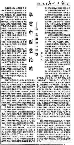 1984年,朱光潜先生曾嘱胡经之先生写一篇书评文章《学贯中西艺论精——〈读中国画论研究〉》,评赏伍蠡甫的意境观,发表于当年8月2日的《光明日报》上。四十年过去了,近期出版的《伍蠡甫中国画研究文集》由三卷组成,分别为《历代名画家论》《中国画论研究》《中国绘画艺术》,集中、完整地呈现了伍先生的画学贡献。