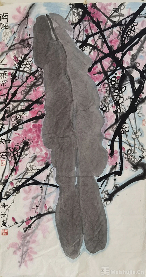 梁江《南国一叶不知冬》纸本设色 180cm×97cm 2022年