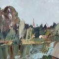 在当代油画的多元格局中,赵培智以其独特的艺术语言和深邃的精神内涵,在画布上构筑起静谧而深邃的的“秘境之景”。他的油画风景作品绝非简单的视觉呈现,不像现代派那样因过度追求形式而陷入空泛,他始终在繁复与单纯之间寻找平衡,展开一场跨越传统与现代、东方与西方、现实与精神的深度对话,既是对现实的隐喻,也是对乡愁等哲思的呈现,与传统的风景油画拉开距离,为观者开启了一扇通往诗性与心灵交融之境的大门。