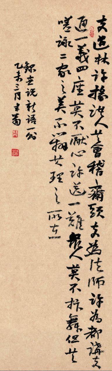 吾性静默,少交游,好读书,常欲守虚静,开怀抱,佳书为伴,笔墨精良,赏心乐事,莫过于此。而辄为生计奔波,俗务扰扰,奈何奈何?王觉斯尝云:“书画事当深山云影中挥洒乃为愉快,安可得乎?”惟吾所作,均吾心也。书时湛然明澈,忘乎所以,工拙而外,其乐自知。