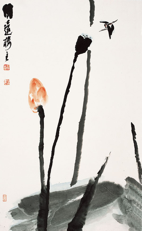 那年夏天,我从友人处得此,翻开画册的那一刻我被深深吸引住了,这画真美!仔细翻阅每一幅画作,每一行题款,静静地回味,那些铿锵的笔墨,灵动的生气在脑海中挥之不去。我深感陆先生之画,无论立意、造型、笔墨、章法都浸润着中国大写意花鸟画前辈们的传统精神,又融合着画家自身的时代气息与独特气韵,融会贯通又自成一格。空灵悠远处有如八大山人,情趣盎然处有如白石,疏狂不羁处有如徐渭,意味深远处有如吴昌硕……在尽得古意之外,陆先生的画又有一股新气象,比如其笔下的猫、鹅、墨荷等,造型别致,不落俗套;比如其取材多来自身边景致,随手拈来,落笔成趣;又如其题款,或纵或横,或繁或简,与画面章法浑然一体,相得益彰。反观当代我所见过的多数中国画画家,徒有写意之表而失其精神之者大有之,或受西方写实主义影响,用水墨代替颜料写其形而失其神者有之,或受所谓表现主义影响,空有水墨抽象而失其造型载体者亦有之。而眼前陆先生之写意花鸟,形完神足,难能可贵!诚然,一幅好画终究难以一言以尽之,至妙处只可心领神会而已!陆先生之画真是妙不可言呢。