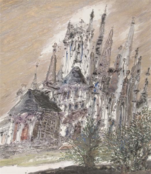 聂危谷老师的建筑系列激情、奔放、富有活力,画面中透露一股情绪的冲动,他用流光溢彩的彩墨,律动飞舞的线条,表现气势恢宏的建筑。在聂危谷的笔下,建筑被赋予生命,有的傲然挺立,有的安静典雅,有些像是在诉说沧桑。