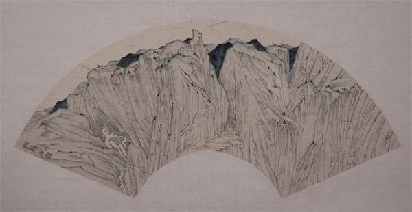 李强老师的山水画更加符合文人画中寂静美的美学特征,画面幽静,空灵,用线描勾勒,少用皴法,设以淡色,画面注重布局,极尽简约之能事,展现山石本来面貌,营造出一种宁静,纯粹的境界。山水在李强的笔下,像是佛教圣地的空灵,道教圣地的仙境,驻足观看,仿佛自己置身世外,唯有静谧的山水。