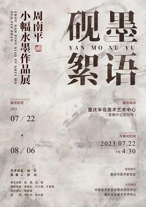 “砚墨絮语——周南平小幅水墨作品展”将于7月22日在重庆半岛美术艺术中心展出。展览由重庆市美术家协会指导,中国美术家协会重庆创作中心和重庆半岛美术艺术中心主办,蔡峰担任策展人,魏东为艺术总监。