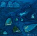 孤独的自我,囚困在山体中,两个交叠而成的意象,真幻难测,我们从泥土中生成,终归会回归尘埃。同质的人群中,她转身回眸,置身其中,在静修中参悟。子夜的宁静,弥漫混杂着凄凉与孤寂的美。夜晚飘来一朵云,却下起了红色的雨,掀开夜幕的窗帘,仰卧在小舟里,划向静穆的夜。