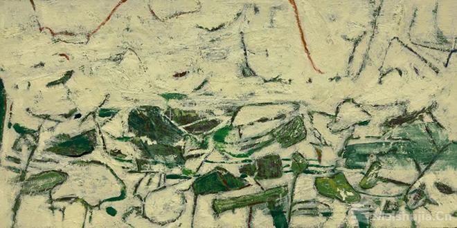 显然,蓝威既试图远离对自然风景的描绘,也试图在抽象形式语言探索中拉近与中国传统文化乃至中国人文精神的距离。在竹石、荷塘等系列作品中,画面以笔触的表现性化解形式分割的理性分析,以此凸显主观直觉感悟自然以及由此形成现代人文精神的表现。从这个角度看,蓝威的抽象表现虽具有康定斯基、蒙德里安、德•库宁、波洛克等化解物质世界的特征,但他更加接近林风眠、吴大羽、吴冠中那种抽象中的东方诗意,只不过他更凸显了一种非合理的抽象原则,在看似乱象的表现中隐含了抽象分析的合理性。这也是蓝威艺术创作最具个性的文化基地。