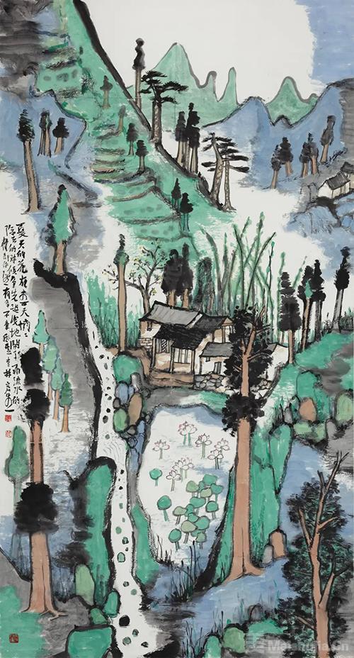 (2/7)林容生 夏天的花 纸本水墨设色 180×96cm 2023年