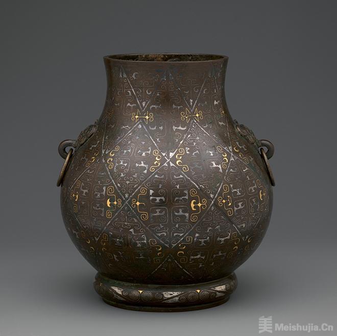 (4/5)铜错金银仿古纹样壶,明代,美国纽约大都会艺术博物馆藏