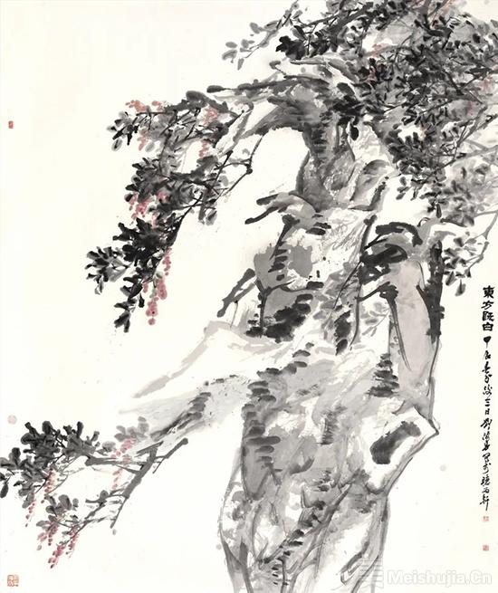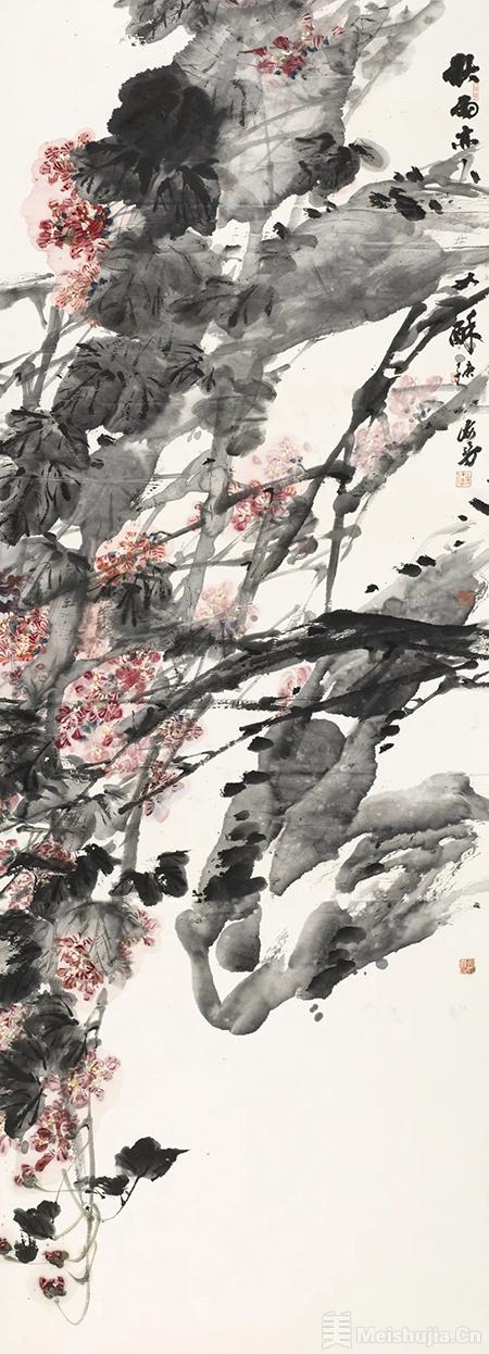 从“天下有风”到“草木灿风”,从宏观到微观,从无形到有形。刘海勇始终深入“风吹”的第一现场,追溯山川悠远、花木生发,观象而感意,绘物而写心,将风带给大地的生机播撒于纸面之上。与此同时,那自家乡吹来的“草木之风”,卷裹着悠远的文化之息,缱绻着历史的积淀、家庭的温暖,深深根植于艺术家的灵与肉之中。在蔓草密林中凝练风骨气韵,于澄潭飞花里点染神韵光华。