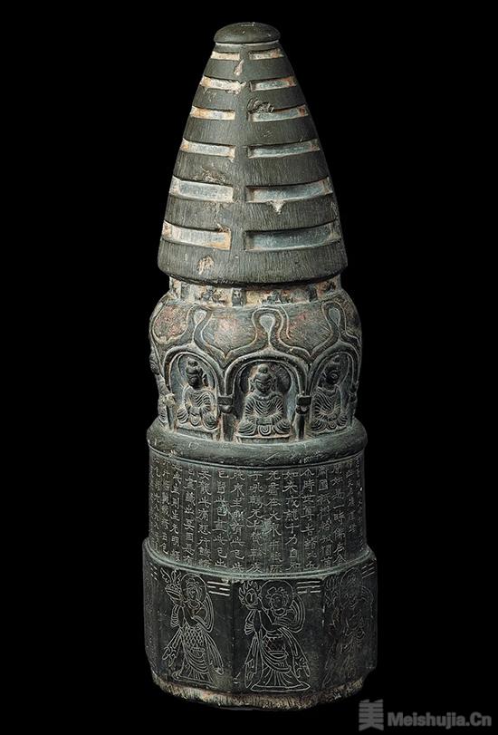 展览中有2件国宝级文物亮相。高善穆石塔铸造于公元428年,通高44.6厘米,底径15.2厘米,是中国已知最早的佛塔实物,此次为重庆地区首次实物展出。